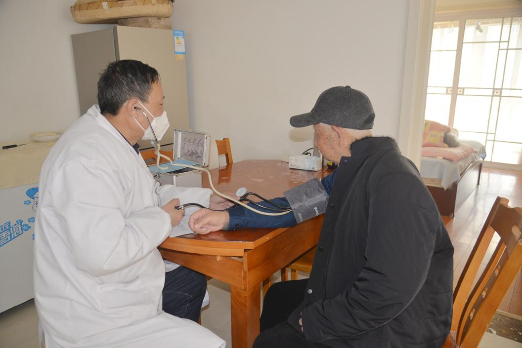 近日,灌東鹽場黨群工作部工作人員和家庭保健醫(yī)生來到行動不便的離休干部家中,進行上門健康體檢。