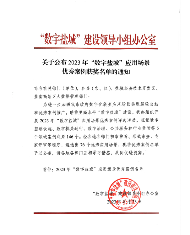近日,“數(shù)字鹽城”建設(shè)領(lǐng)導(dǎo)小組辦公室公布了2023年“數(shù)字鹽城”應(yīng)用場(chǎng)景優(yōu)秀案例名單,海興集團(tuán)“智慧工地指揮中心”案例獲評(píng)一等獎(jiǎng)。2023-09-07 -