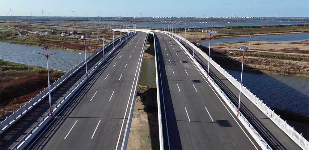 濱響大道規(guī)劃為黃海新區(qū)橫向主干道路,該項目分東、中、西三段實施,東起濱海港海堤,西至陳家港大道,道路全長45.5公里,規(guī)劃道路紅線寬60米,雙向六車道設計,設計速度60公里/小時,總投資約為35億元。作為黃海新區(qū)集疏運體系重要組成部分,濱響大道是策應市委、市政府“兩港兩城”建設、貫通濱海港區(qū)和響水港區(qū)的重要交通樞紐工程。該項目建成后將進一步完善新區(qū)路網(wǎng),有效提升產(chǎn)業(yè)空間布局,增強新區(qū)項目承載能力。