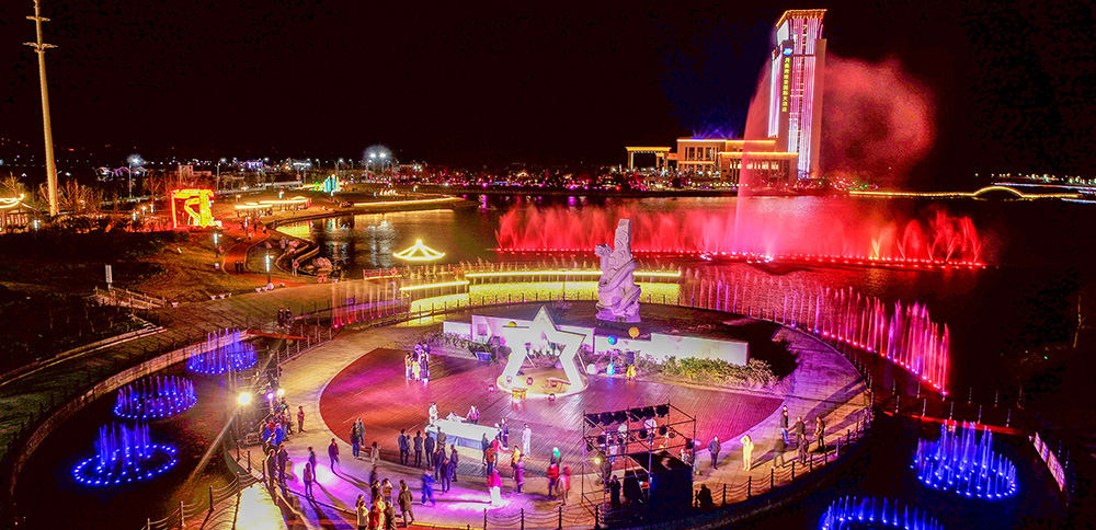 靈龍湖公園陸域面積330畝、水域面積370畝,是一座承載古黃河文化、淮河文化元素的復(fù)合型濱湖生態(tài)公園,采用“一島、一環(huán)、四片區(qū)”的空間格局,以綠為韻、以水為脈,將自然與生態(tài)完美融合,延續(xù)著兩河及海洋文化記憶。特色景點(diǎn)包括:親子樂園、水幕映畫、音樂噴泉、舞龍廣場(chǎng)、生肖廣場(chǎng)、網(wǎng)紅打卡點(diǎn)主題雕塑等景點(diǎn),打造生態(tài)自然的主客共享公共休閑空間。
